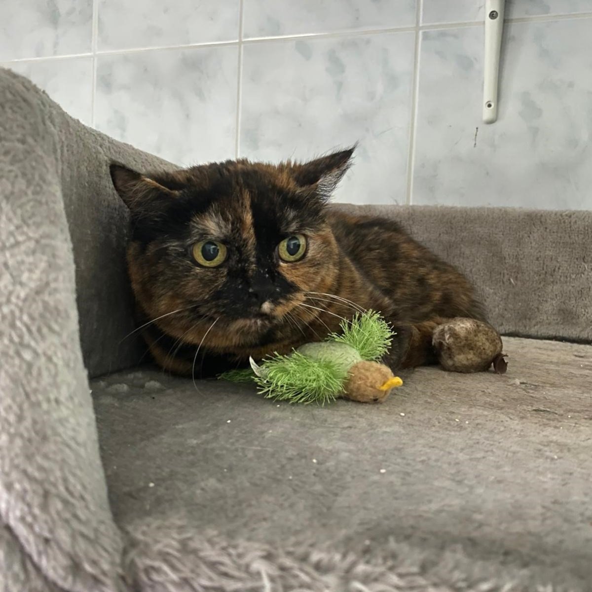 Floortje is nog een onzeker katje, maar in een rustige thuis zal ze zeker openbloeien op termijn. We kunnen haar nu al benaderen en aaien. Floortje staat ter adoptie samen met Snoopy. Ze wonen al heel hun leven samen en hebben steeds binnen gezeten.