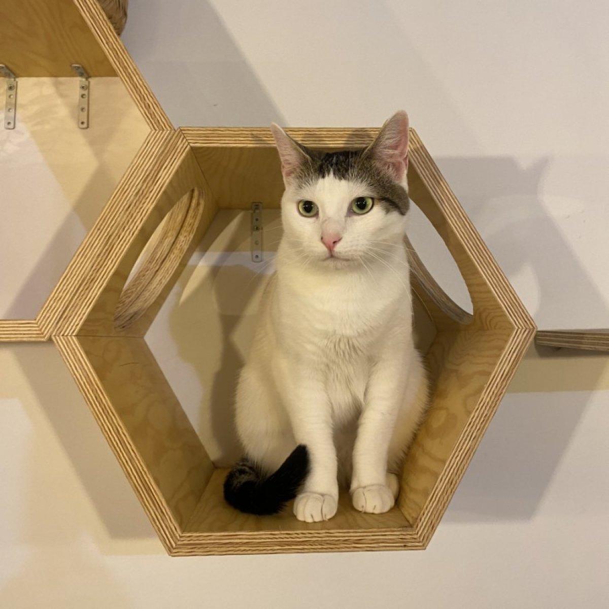 Ze een enthousiaste, superactieve meid die graag komt spelen. Maar ook knuffelen doet ze enorm graag. Ze kan goed met andere katten overweg en zou graag een thuis hebben met een speelkameraadje.