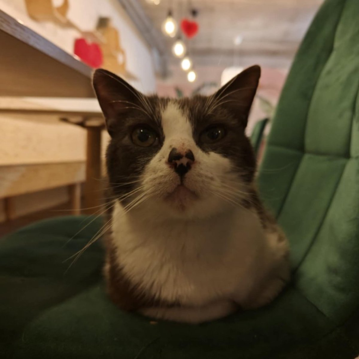 Hij is een rustige kat die graag altijd in de buurt zit van de gezelligheid.