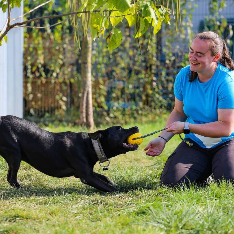 Ragnar is een enthousiaste, lieve speelvogel! Een echte ballenfan die alles doet voor zijn bal. Hij kent zijn basiscommando's uitstekend en is nog steeds heel leergierig om nog meer te leren. Met een snoepje of een bal bereik je heel veel bij deze kanjer.