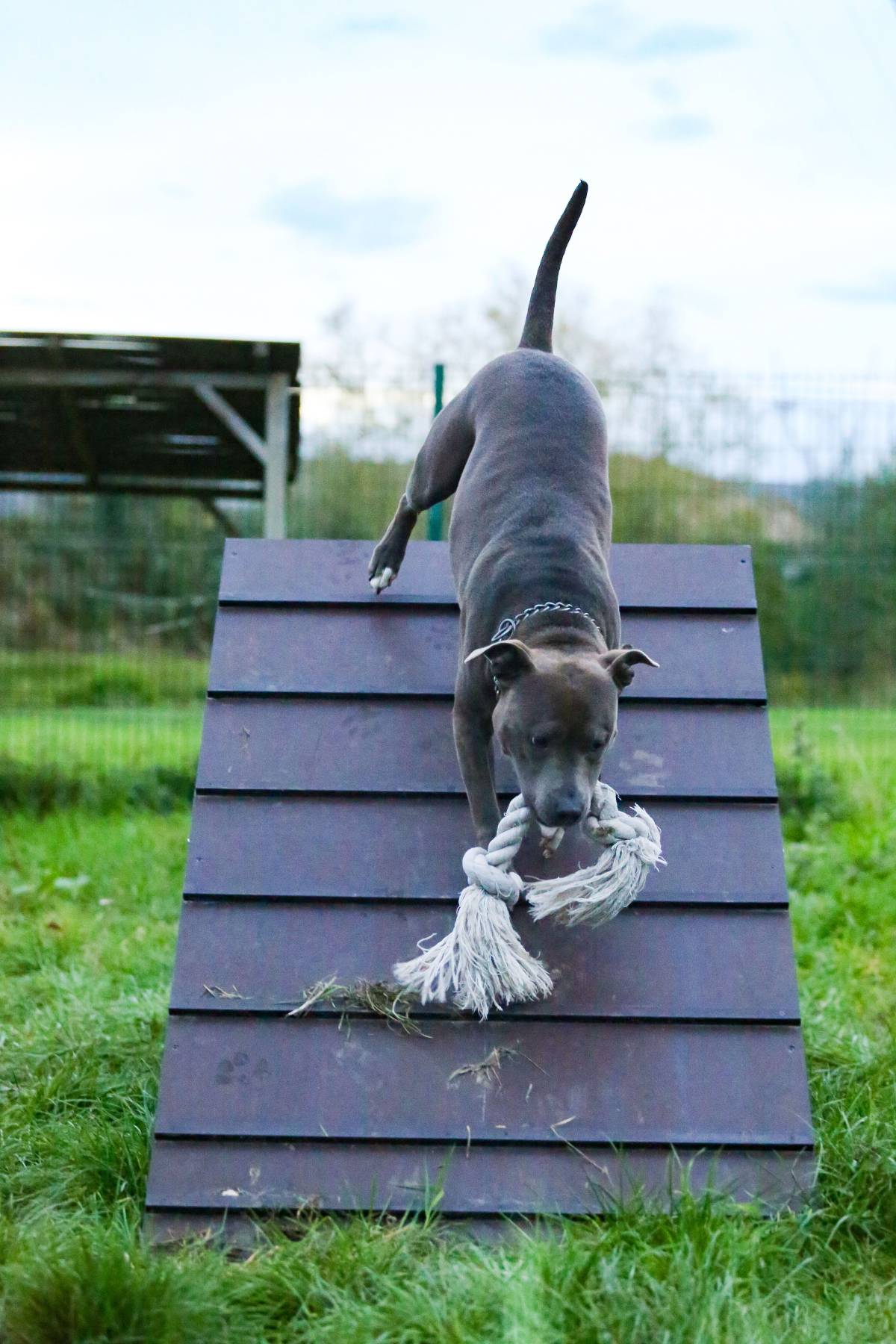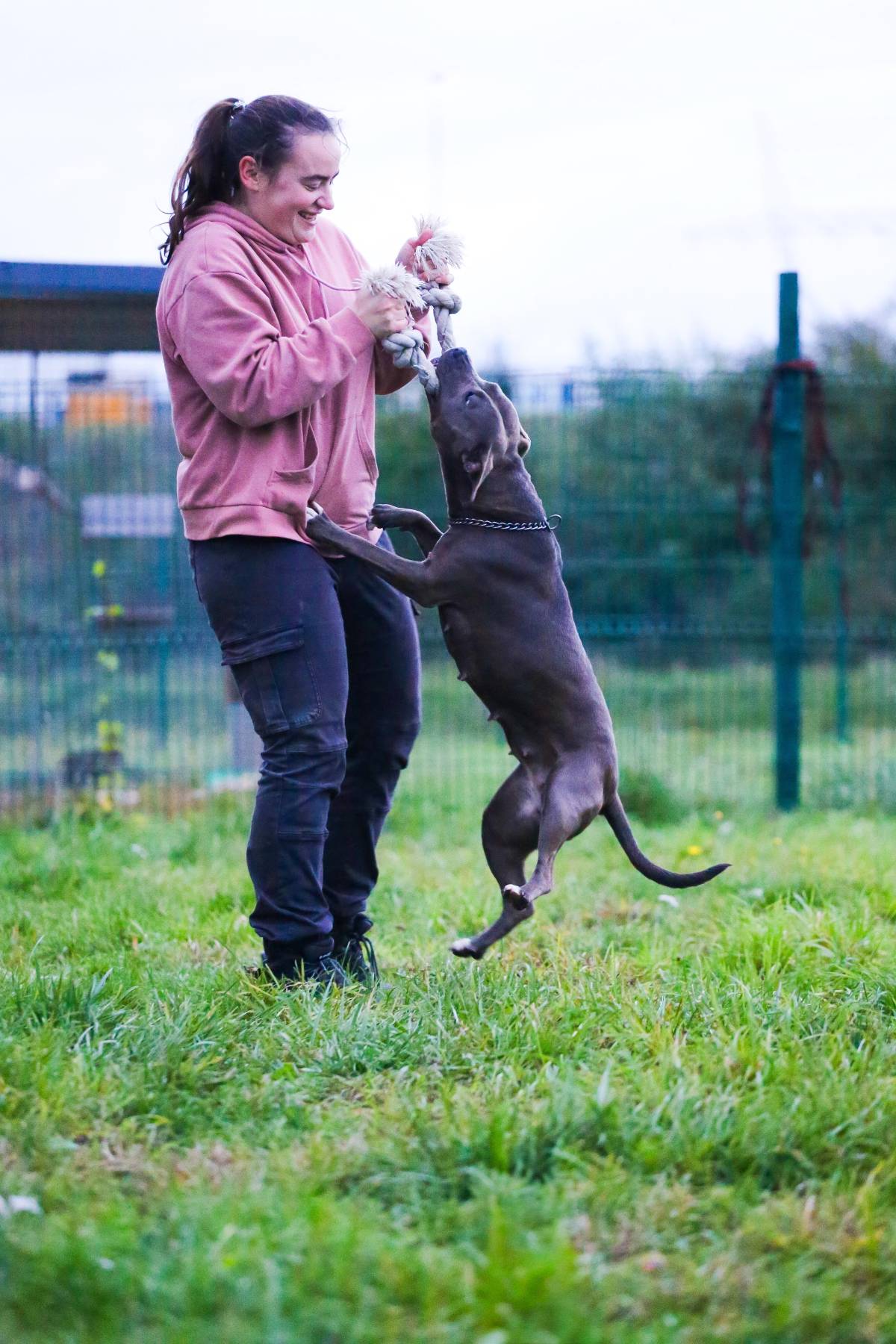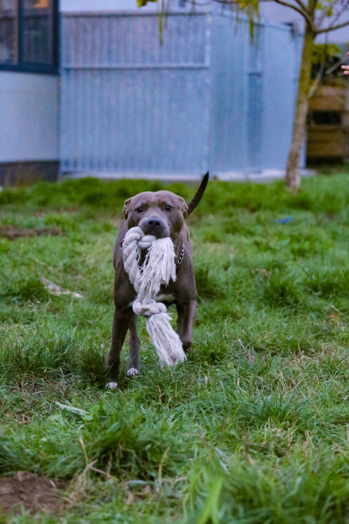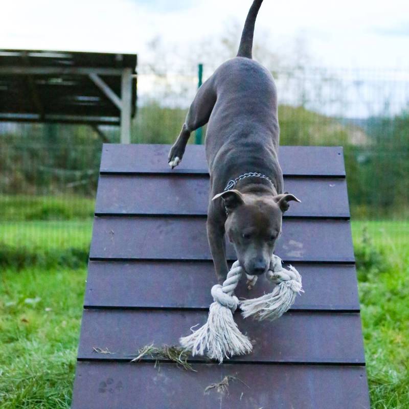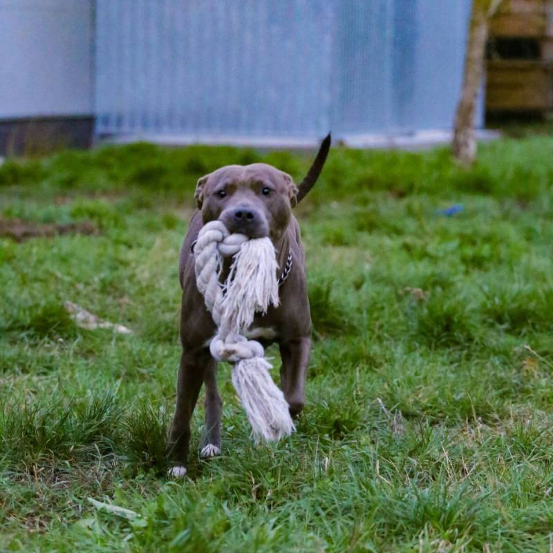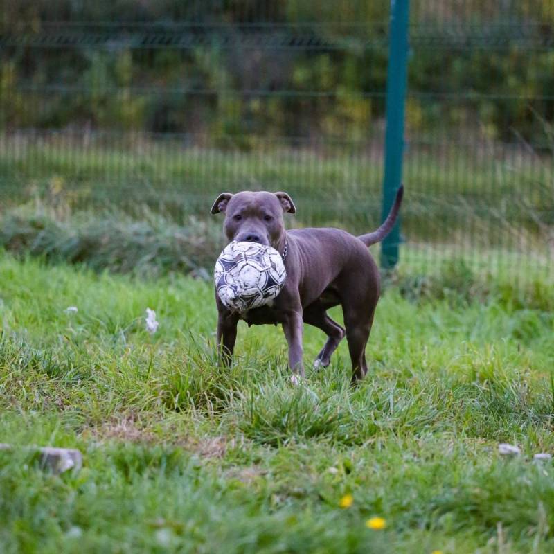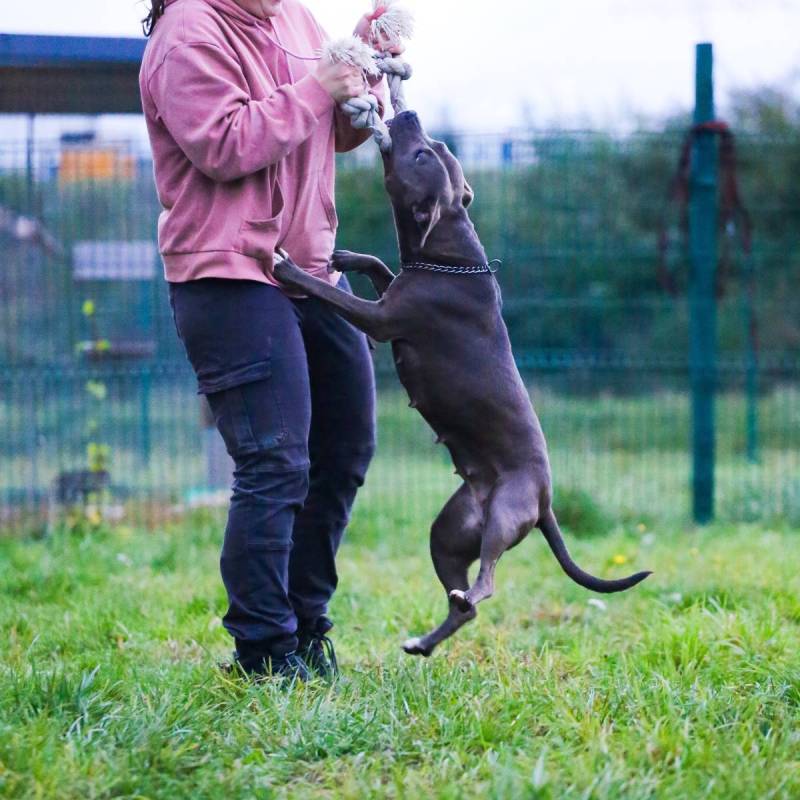 Luna is een echte speelvogel! Achter een bal lopen, een stevig partijtje touwtrekken, over obstakels springen/klimmen,... niets is haar te veel en alles is even leuk! Ze kent de basiscommando's en is ook heel trainbaar. Bij het wandelen durft ze in begin nog wat trekken maar in het algemeen is het een heel aangename wandelpartner die andere honden en voorbijgangers netjes negeert.