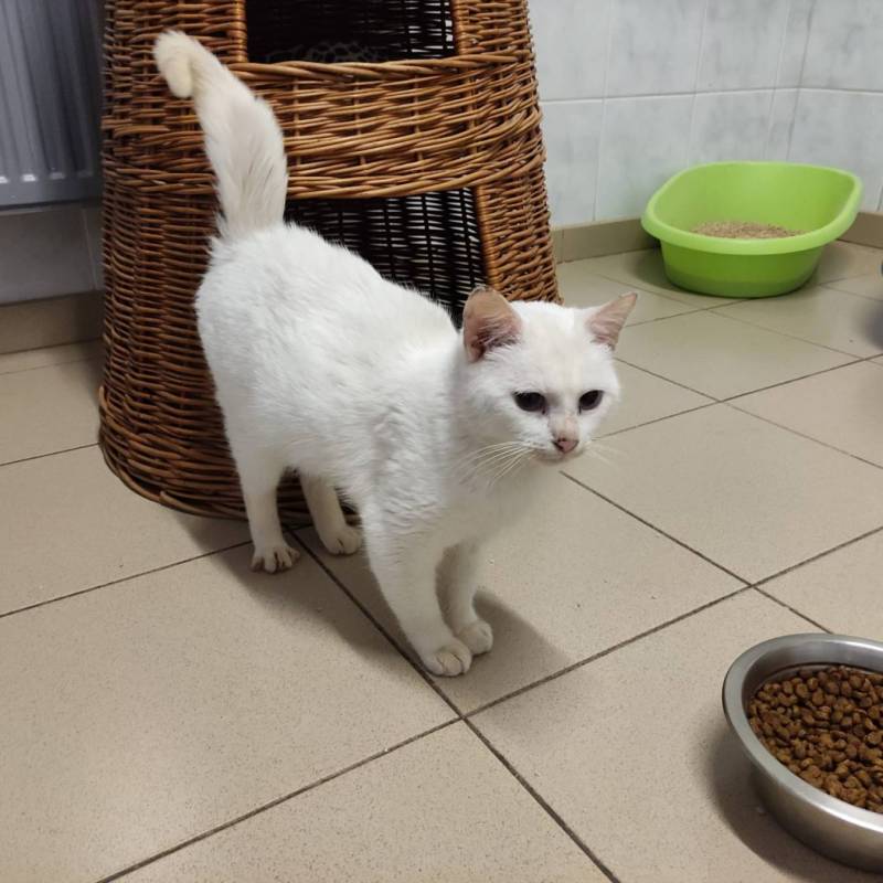 Whitney werd als gevonden zwerfkatje bij ons binnen gebracht. We zochten naar een eigenaar, maar helaas konden we deze niet vinden. Daarom zijn we nu naar een nieuwe thuis voor haar op zoek, waar ze de rest van haar leven mag blijven in een warm mandje. Whitney wil je graag eerst even leren kennen, maar dan begint ze te spinnen en komt ze graag om aaitjes vragen. Whitney is een zachtaardig katje dat niet zal krabben of bijten. In haar nieuwe thuis zou ze ook graag terug toegang tot buiten hebben. Ze kan met andere katjes overweg, maar dit is geen vereiste.