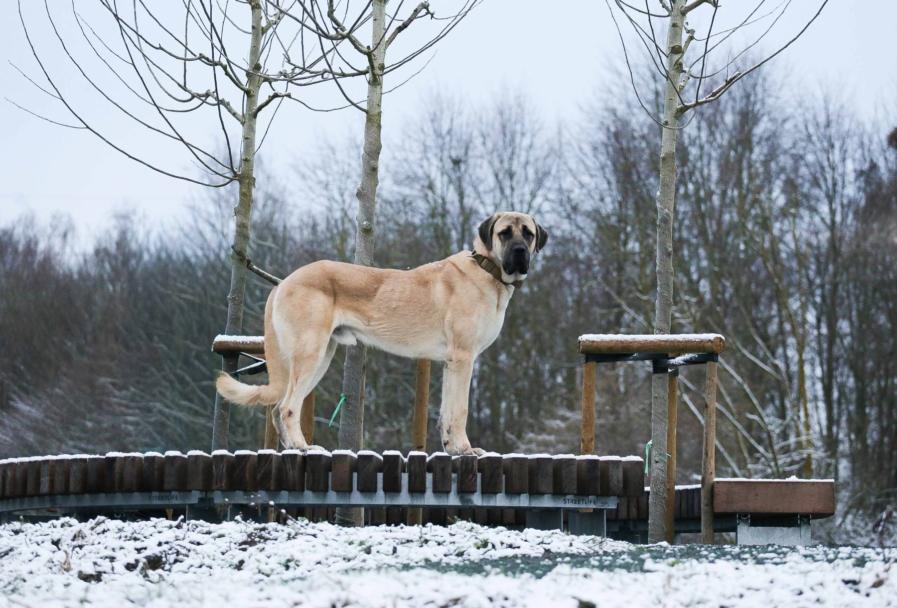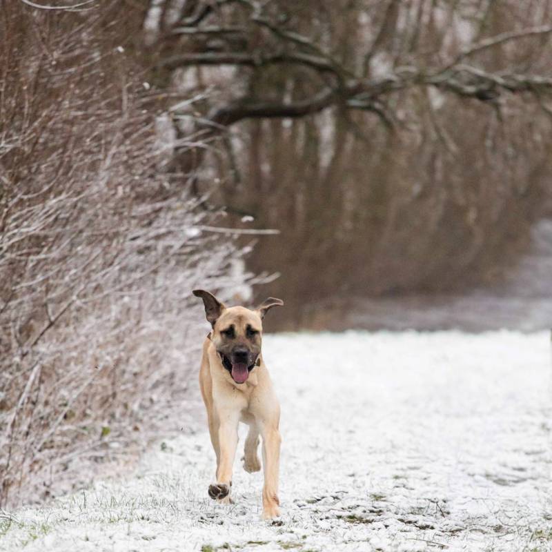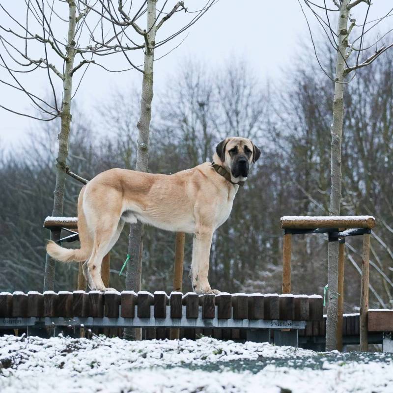 Op wandeling is er wel nog wat werk. Hij trekt aan de leiband en is uiteraard heel sterk! Ook trekt en blaft hij richting mensen en andere honden. Een ervaren baasje die stevig in zijn schoenen staat is dus zeker nodig!