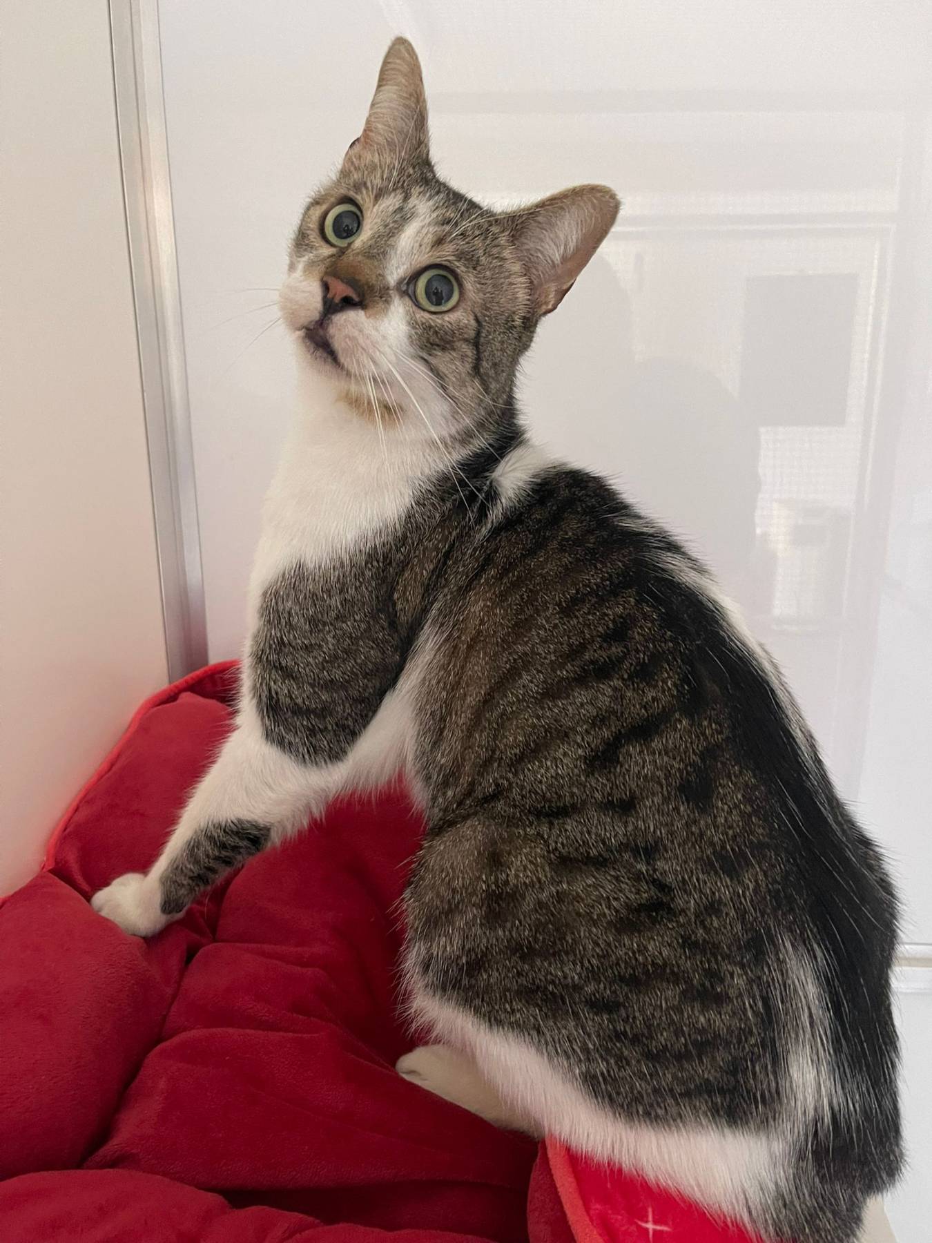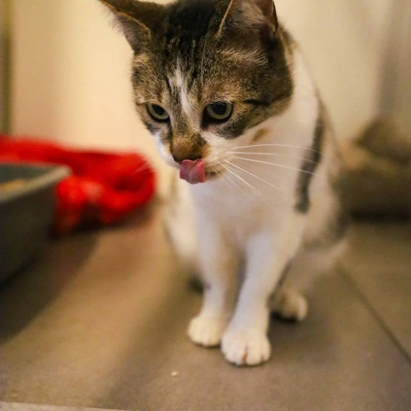 Fluppe is een rustige knuffelkater. Wanneer we zijn hokje binnen gaan, zal hij afkomen om kopjes te geven en aaitjes te vragen.