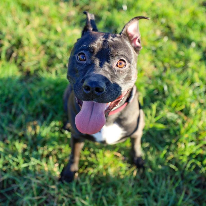 Xena is een jonge, actieve dame die veel beweging nodig heeft. Het is een bom energie die dolgraag speelt. Ze is super lief maar kan wel nog opvoeding gebruiken. Zo springt ze nog enorm veel op en durft ze hierbij, in al het enthousiamse, wel nog happen. Ze kan bij iets oudere kinderen die honden gewoon zijn, voor de kleinste is ze iets te onstuimig. Alleen thuisblijven is geen probleem, ze is ook een bench gewoon.