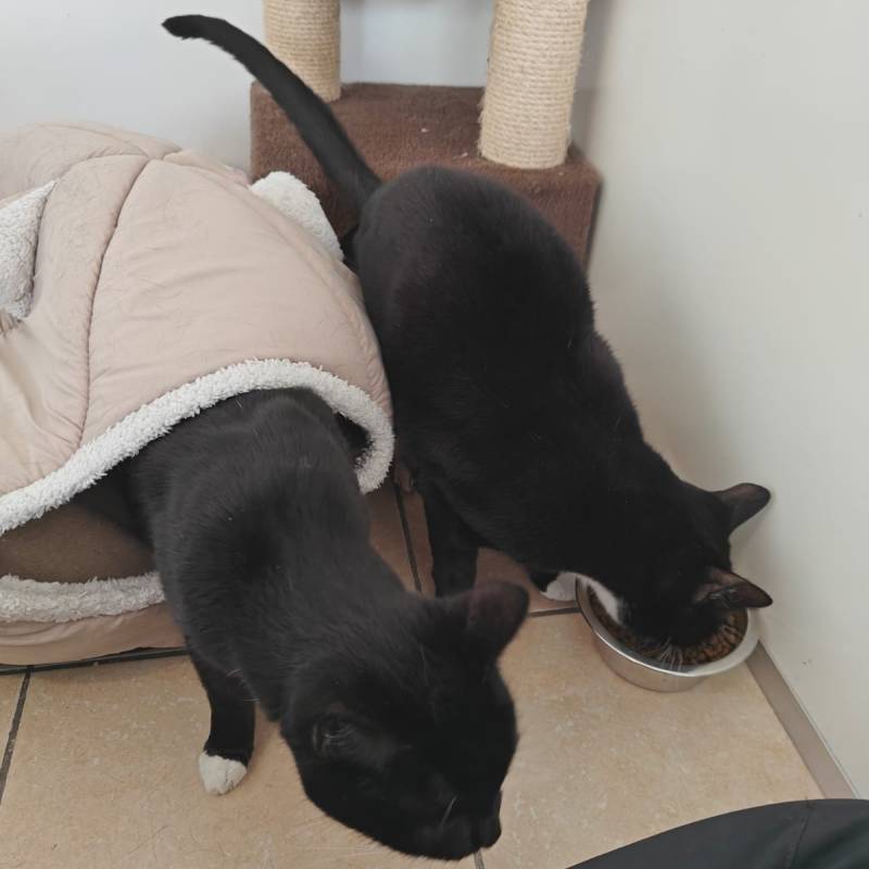 Lea en Cj kwamen binnen omdat hun baasje van werk veranderde en niet voldoende tijd meer had om aan hun te geven die ze verdienen. Het duo is vrij gelijkend van karakter; rustig, maar eens het rustig is komen ze maar al te graag kijken voor knuffels. Dit doen ze op een zachte, rustige manier zodat je helemaal mee 'zen' wordt. Eens ze in hun element zijn krijgen ze maar niet genoeg van flodderen. Ze hebben in hun vorige thuis altijd binnen geleefd dus kennen het nog niet om buiten te gaan. Dit mag natuurlijk wel, maar is geen behoefte.